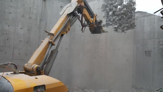 小編在現(xiàn)場親眼所見某改造拆除工地,在進(jìn)行一項拆除鋼筋混凝土墻體,混凝土樓板,混凝土樓梯等施工?,F(xiàn)場一臺Brokk160型遙控拆除機(jī)器人,白天裝上混凝土破碎鉗工作;晚上換裝液壓破碎錘工作,大大加快工程進(jìn)度,讓人震驚不已。